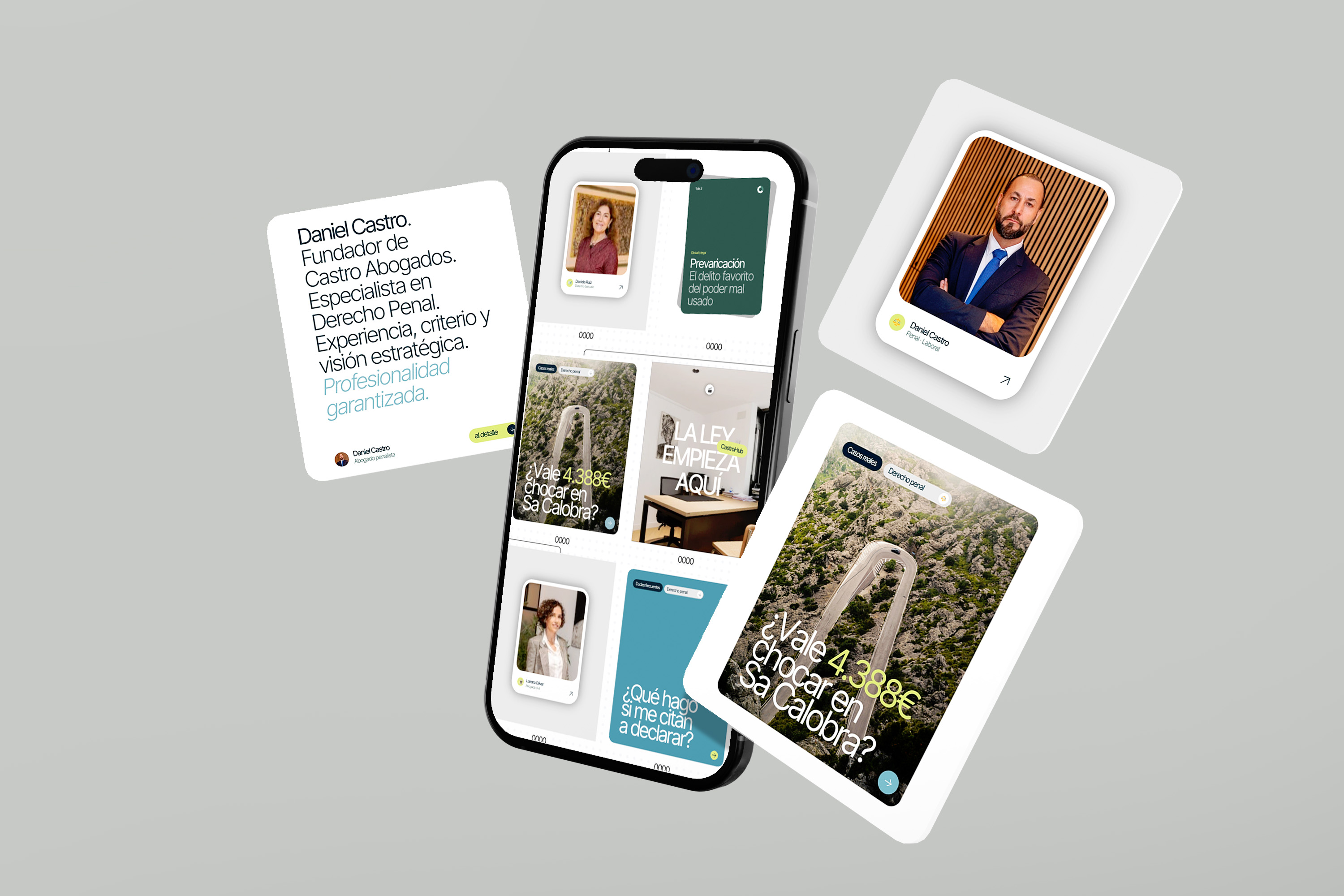 El proyecto se completa con un sistema de comunicación para redes sociales, donde el despacho adopta un tono informativo, cercano y ligeramente irónico cuando toca. Piezas que responden a preguntas reales (“¿Qué hago si me citan a declarar?”), explican procesos legales sin dramatismos innecesarios y refuerzan la idea de acompañamiento: la ley empieza aquí, pero no se queda en el papel.
